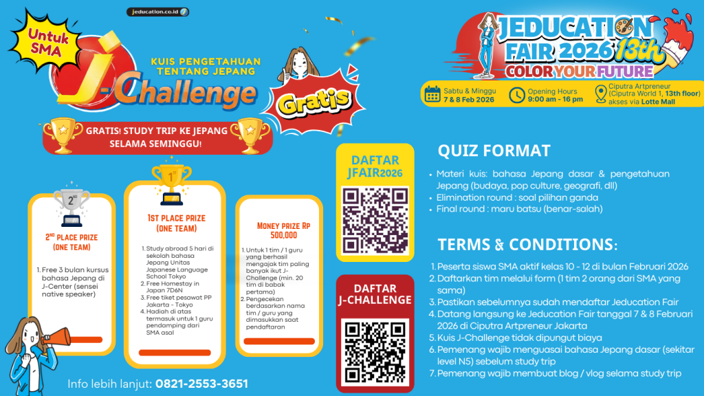 Free 3 bulan kursus bahasa Jepang di J-Center (sensei native speaker)