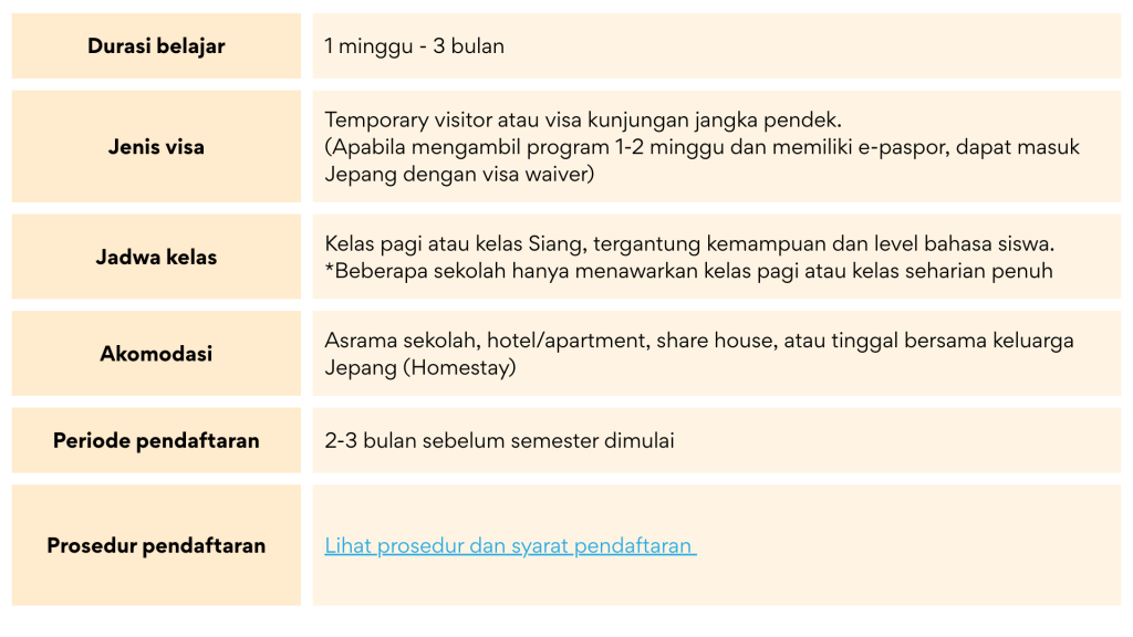 *Periode masuk Januari: Siswa harus memiliki kemampuan bahasa Jepang minimal N5 keatas*